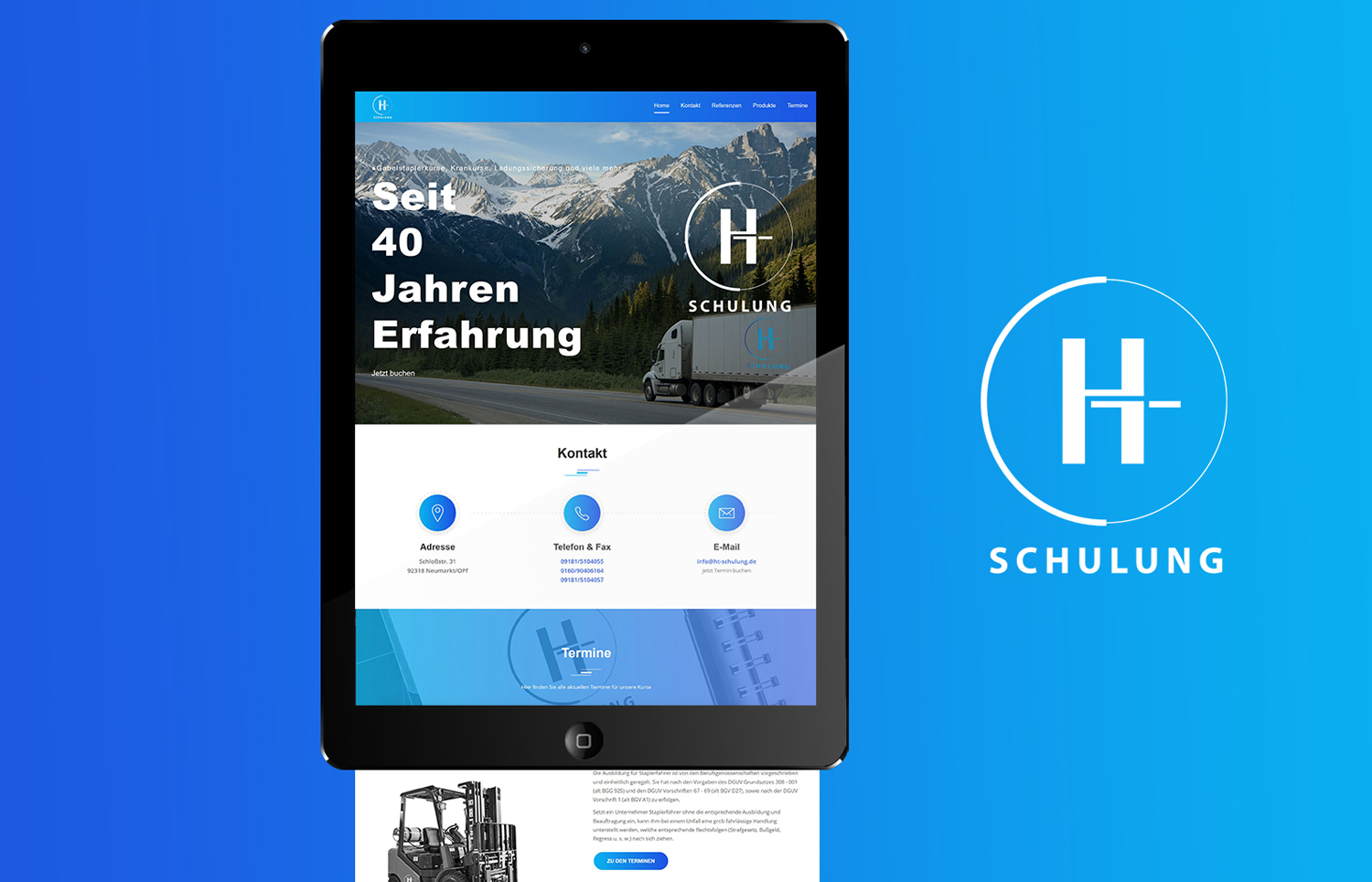 Das der Buchstabe T fungiert wie eine Art Hebebühne oder der Teil des H als Kran. Ebenso sind die beiden Buchstaben als Traglast zu intepretieren. Deshalb wurde direkt aus dem Logo Elemente entwickelt die als abstrakte Logos für die Produkte fungieren. Erste Reihe: Erdmaschinenkurs, Berufskraftfahrerqualifikation, Ladungssicherungkurs. Zweite Reihe: Hubarbeitbühnenkurs, Krankurs, Teleskopkurs, Gabelstaplerkurs.