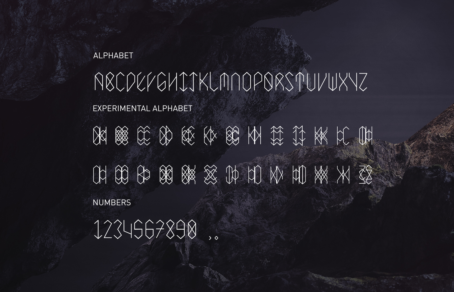 Hier sind alle Buchstaben, Zahlen mit einem Experimentellen Alphabet. Dies kann für Infogafiken oder auch als Element genutzt werden.